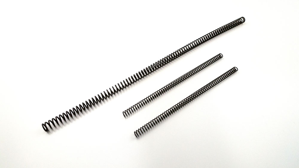 Det viktigaste när man ska välja fjäder är den invändiga diametern på luftgevärets pistong och yttre diametern på fjäderguiden. Fjädern ska löpa fritt i både pistong och på fjäderguiden för att fungera på rätt sätt. Längden på fjädrarna kan man alltid anpassa för att uppnå önskad prestanda. Kom ihåg att en för lång fjäder oftast resulterar i att geväret inte hakar upp som det ska.